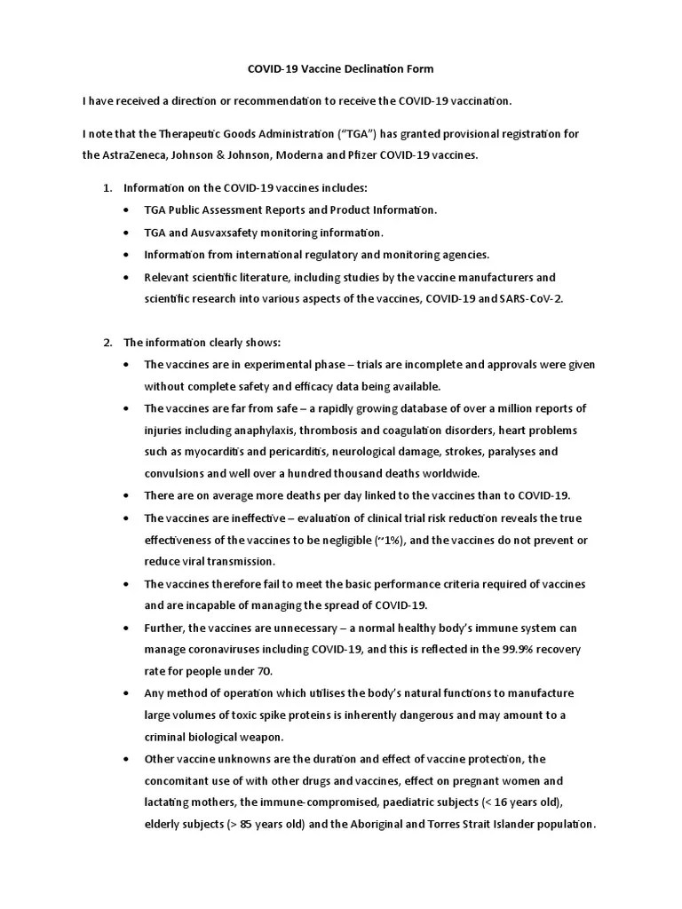 COVID19 Vaccine Declination Form PDF Vaccines Consent